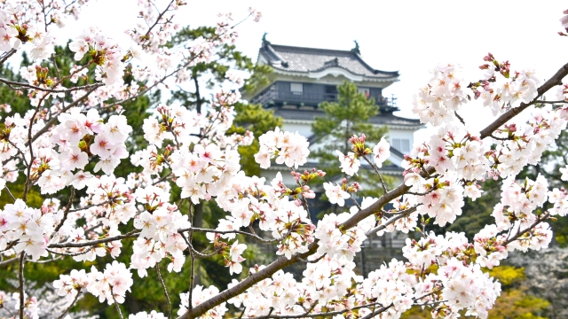 岡崎城を中心に広がる桜並木はスケール感があり、城の白壁や石垣と淡い桜色が重なり合うことで、非常に写真映えする景色を作り出します。