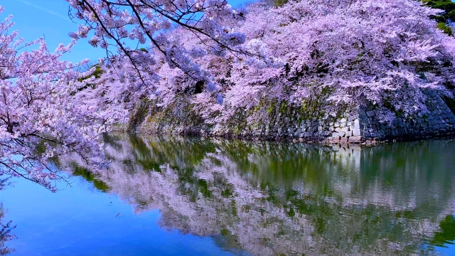 国宝の天守や内堀を背景に咲く桜が楽しめるため、昼と夜でまったく違う雰囲気を味わえるのが大きな魅力になります。